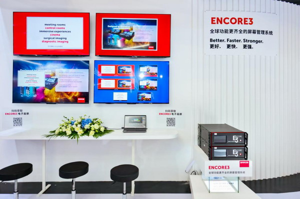 展區(qū)中還展示了圖像管理大師系列全新平臺(tái)Encore3,通過四個(gè)大屏顯示器展現(xiàn)無損原生4K內(nèi)容處理、最多8路4K輸出以及超低延遲等出色性能,讓觀眾近距離體驗(yàn)強(qiáng)大的功能與操作的便捷性。