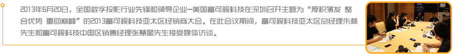 北京大恒創(chuàng)富可視產(chǎn)品銷售總監(jiān)趙春江先生表示:大恒創(chuàng)新攜手富可視在國內(nèi)市場深耕13年,在此期間獲得富可視大力支持,在此期間,大恒創(chuàng)新曾經(jīng)也獲得過國內(nèi)投影機分銷的前3,中國市場作為全球投影機最重要市場之一。時隔多年,富可視在此重振旗鼓,并將亞太區(qū)總部設(shè)立在中國,這足以證實富可視對中國市場的重視。趙春江表示,大恒將把握富可視給予的機遇,同富可視一起在國內(nèi)投影市場再創(chuàng)輝煌! |