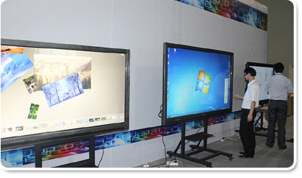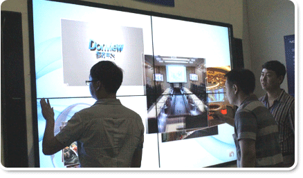 一進(jìn)場館展示的是東方中原自主研發(fā)液晶拼接屏打造的屏體沙盤,其中,包括一套采用16塊46寸的窄邊拼接屏,整個(gè)屏體沙盤系統(tǒng)的建設(shè)涉及虛擬仿真技術(shù)、邊緣融合技術(shù)、立體投影技術(shù)、GIS系統(tǒng)等多種技術(shù)。互動(dòng)案例墻采用東方中原4塊55寸液晶拼接屏,分辨率1920X1080,雙邊5.3mm,亮度500cd/㎡,可視角178度。可實(shí)現(xiàn)大畫面整體一致性的的展示,同時(shí)配備多屏處理系統(tǒng)和紅外觸摸系統(tǒng),充分展示我公司圖片與視頻的成功案例。紅外觸摸系統(tǒng):實(shí)現(xiàn)多點(diǎn)、多人互動(dòng),任意拖拽、旋轉(zhuǎn)、放大、縮小。多屏處理系統(tǒng):實(shí)現(xiàn)單屏、雙屏、多屏、四屏局部、整體、過渡、流暢的畫面播放。 |