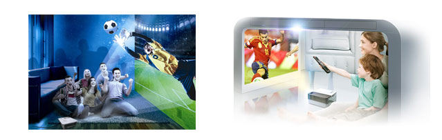 神畫科技推出一項創(chuàng)新產(chǎn)品——微型智能投影電腦,采用了全自動調(diào)焦等多項全球首創(chuàng)的投影技術(shù);诎沧4.2深度優(yōu)化的操作系統(tǒng),可完美兼容200萬安卓應(yīng)用程序,基于虛擬操控深度優(yōu)化的UI界面讓你的任何操作都變得隨心所欲得心應(yīng)手。一幅60寸的投影畫面投到墻上后,用戶可通過觸控筆對投影畫面發(fā)射紅外線控制信號,主機感應(yīng)到控制信號后進行相應(yīng)的運算處理,從而實現(xiàn)了投影畫面的虛擬觸控。使其不僅僅是一臺投影儀,更是一部投放在墻面上的超大尺寸平板。同時,由于產(chǎn)品具有全自動調(diào)焦功能,因此用戶無需手動調(diào)焦,開機后立刻就可以對投影畫面進行觸控操作。 | 神畫X1雖然產(chǎn)品僅有5.5寸大小,但硬件配置卻相當(dāng)給力:配備1.2G四核CPU,1G內(nèi)存和8G閃存,自帶4.2安卓智能操作系統(tǒng),支持無線WiFi、藍牙等功能,同時產(chǎn)品自帶USB、MHL和HDMI數(shù)據(jù)傳輸接口以及3.5mm音頻輸出端口,可實現(xiàn)更多的功能拓展——如此高端的硬件配置足以滿足各類影音娛樂的需求。另外,對于投影產(chǎn)品來說,產(chǎn)品架設(shè)是一個讓人頭疼的問題,而神畫X1配備了人性化的萬向轉(zhuǎn)軸支架,用戶可在各種場景下方便的完成產(chǎn)品的架設(shè)操作。高清享受,實況直播。和朋友邊喝啤酒邊探討戰(zhàn)況,激情暢享世界杯。