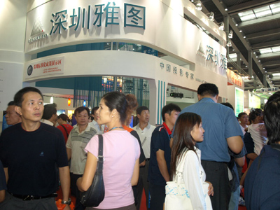在雅圖公司展區(qū),陣容強(qiáng)大的產(chǎn)品線吸引了前來參觀的觀眾。不同尺寸的AT-65LS9A高清硅晶數(shù)字電視以圓圈的形式擺列,新穎而獨特,正在播放的影片以超大畫面、超高清晰度的畫質(zhì)使觀眾駐足觀賞;而不同型號的投影機(jī)產(chǎn)品讓觀眾看花了眼,AT-X8300等產(chǎn)品以智能亮度調(diào)節(jié)、智能梯形校正、斷電保護(hù)功能(可根據(jù)客戶的要求配制)以及光防塵設(shè)計贏得觀眾的青睞,紛紛、詢問產(chǎn)品相關(guān)信息。